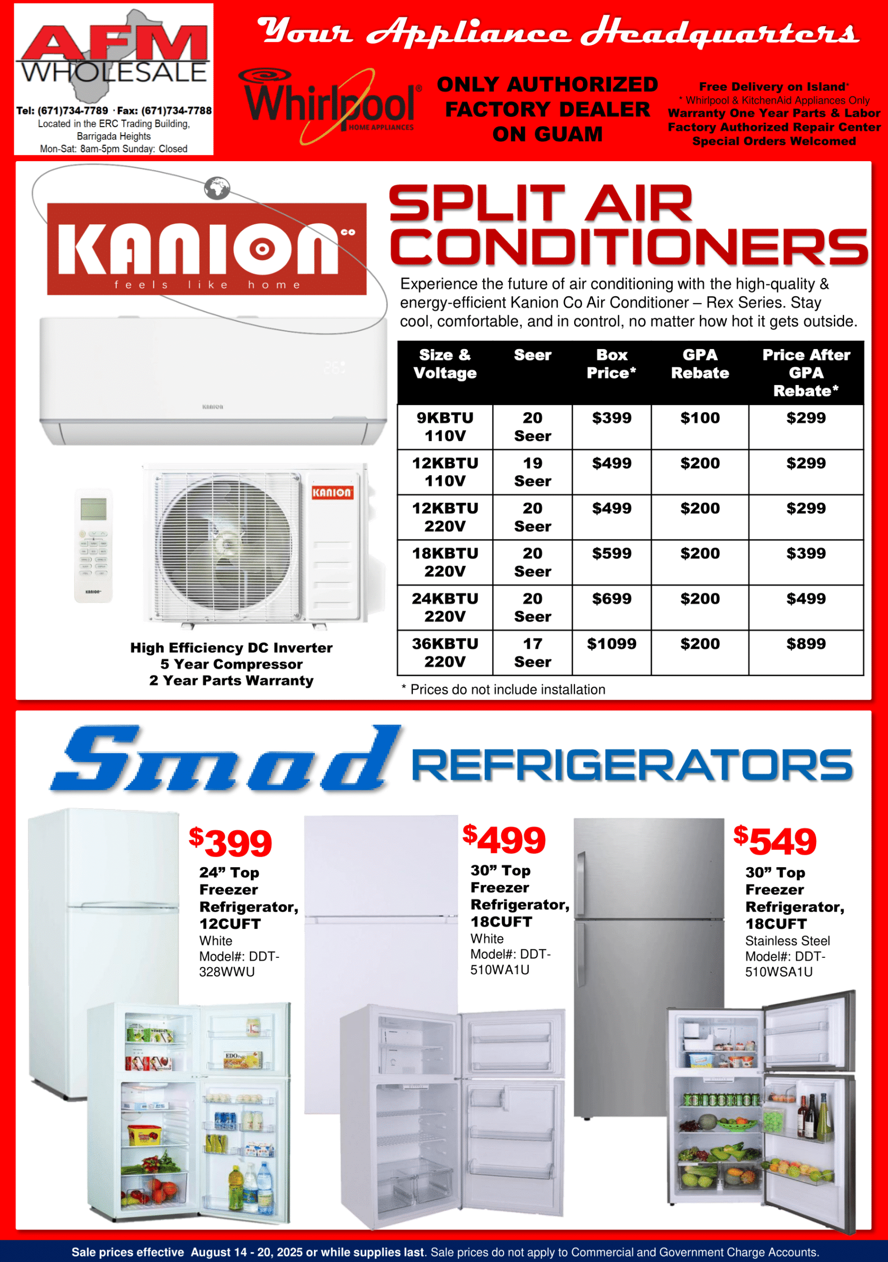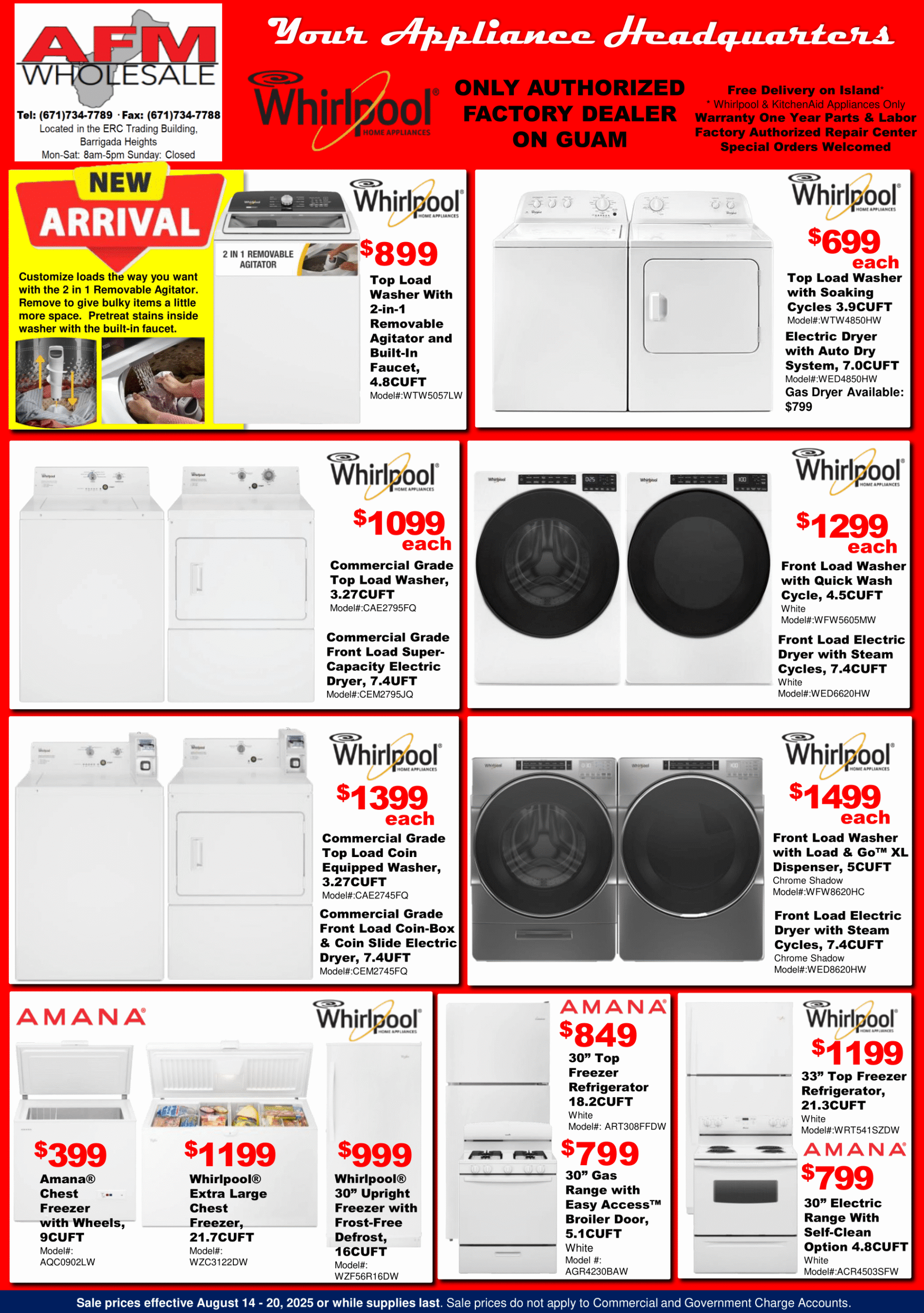 SALE PRICES EFFECTIVE August 14-20, 2025 OR WHILE SUPPLIES LAST. SALE PRICES DO NOT APPLY TO COMMERCIAL AND GOVERNMENT CHARGE ACCOUNTS