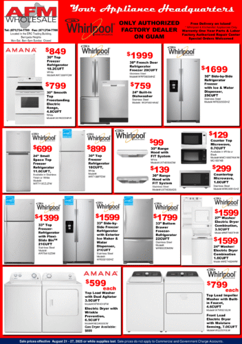 SALE PRICES EFFECTIVE August 21 – 27, 2025 OR WHILE SUPPLIES LAST. SALE PRICES DO NOT APPLY TO COMMERCIAL AND GOVERNMENT CHARGE ACCOUNTS