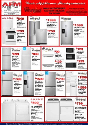 SALE PRICES EFFECTIVE September 11 – 17, 2025 OR WHILE SUPPLIES LAST. SALE PRICES DO NOT APPLY TO COMMERCIAL AND GOVERNMENT CHARGE ACCOUNTS